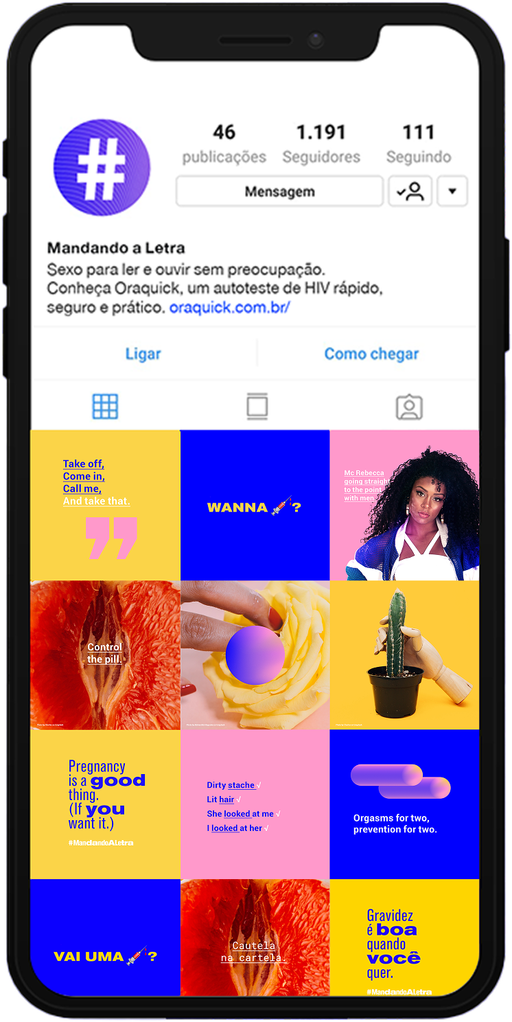 We’ve chosen Instagram as the main hub for content about safe sex due to its popularity. On the platform, we can share a wide range of content, including videos, interviews, and information on how to get vaccines through the public health system.