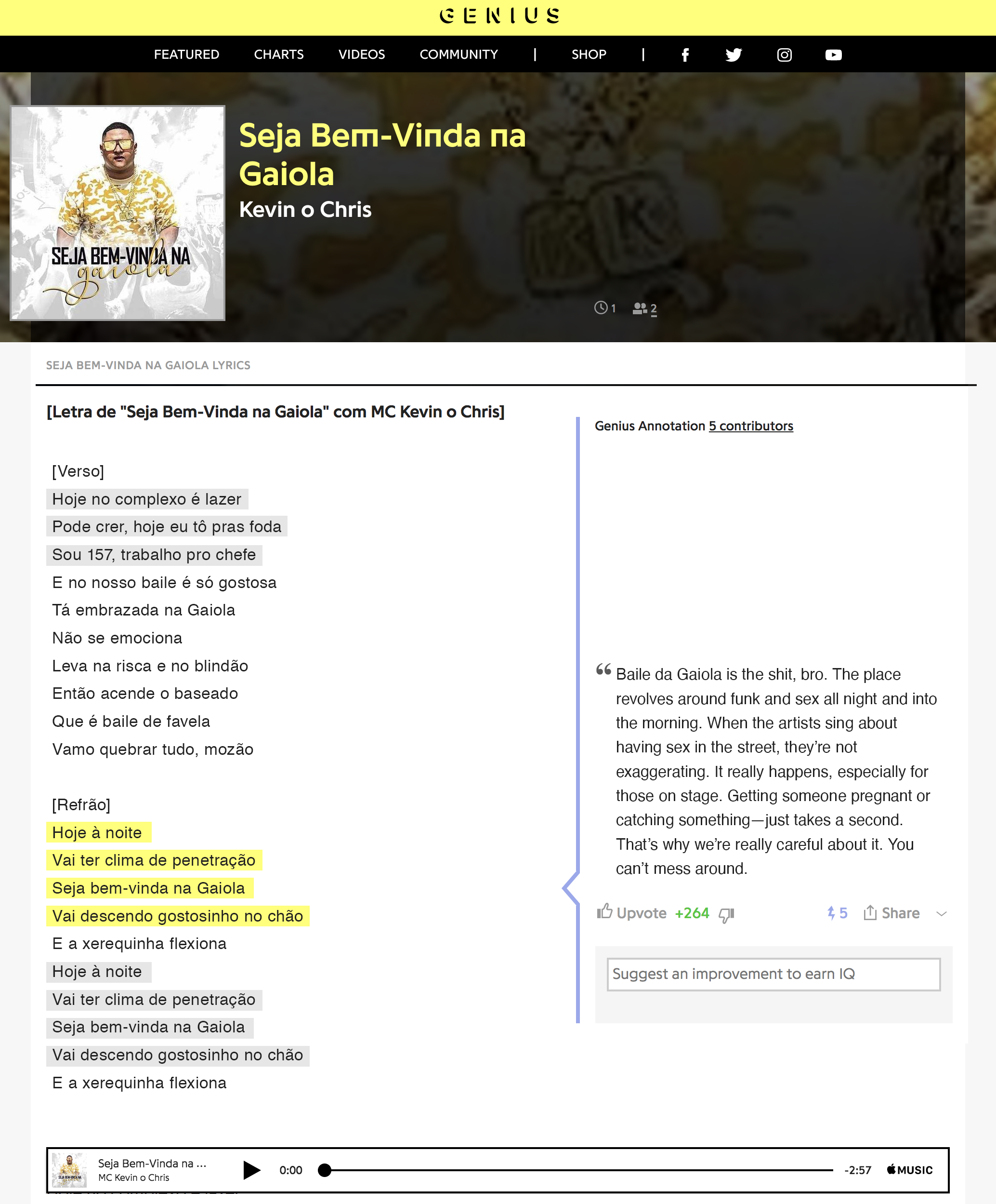 Genius is one of the most known collaborative lyric databases on the internet. One of its main features is having artists themselves place their comments about their music. A great resource for our campaign.