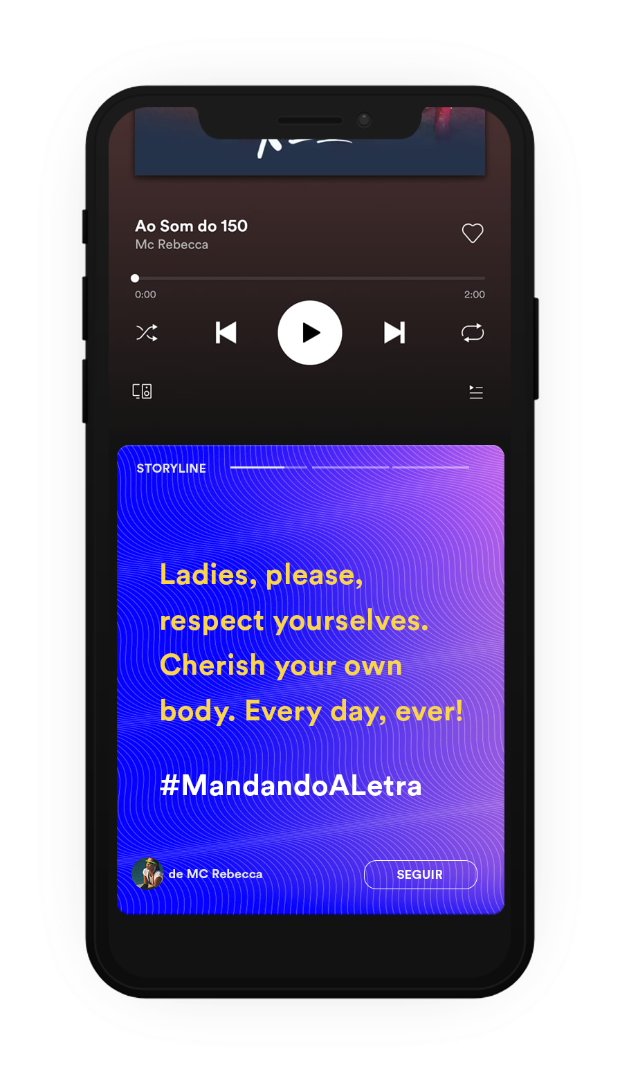 For all users, Spotify had a feature called Storyline, where the artist could add personal notes to specific parts of a lyric. We included that as part of the campaign, with real comments of these artists about prevention on sex.