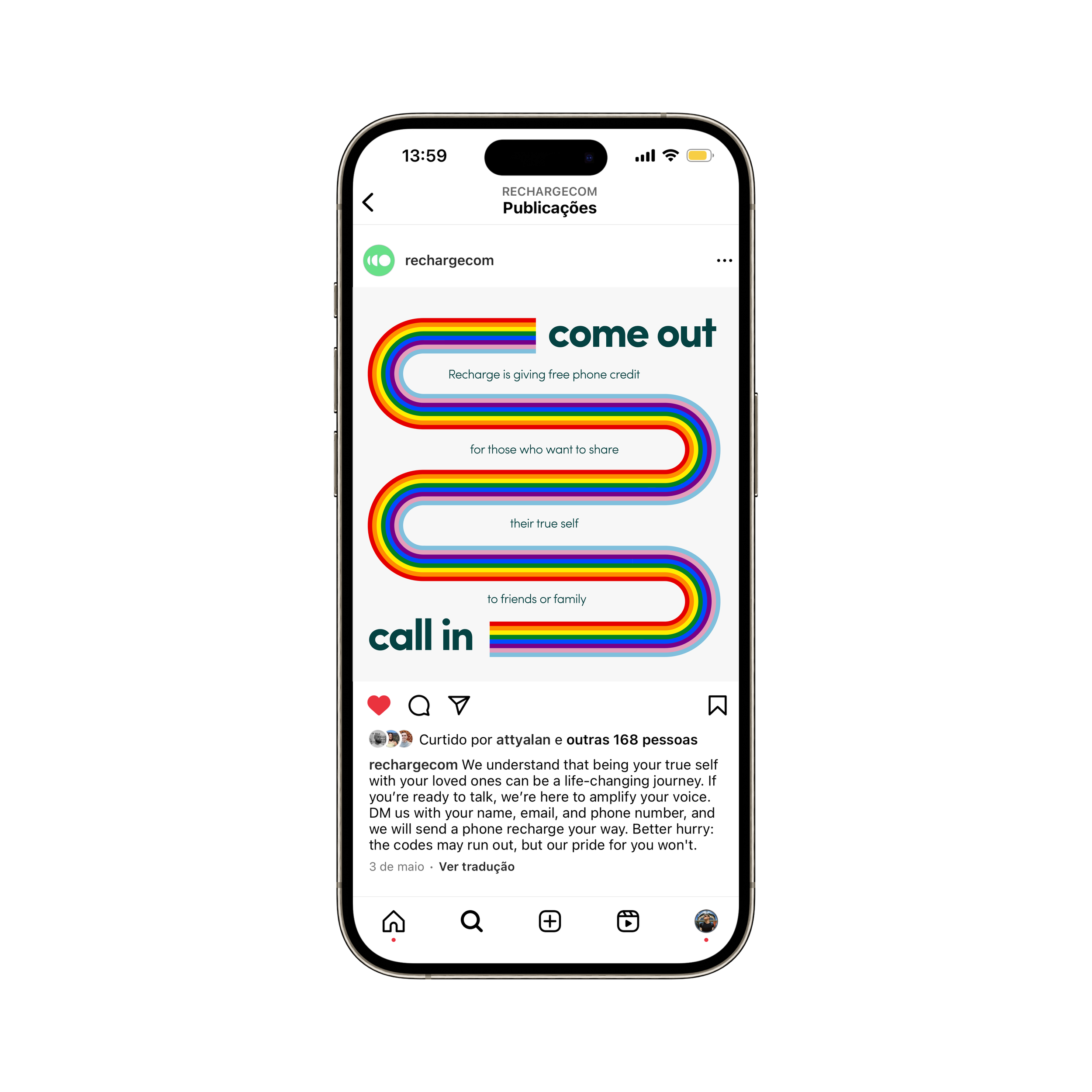 The gist was simple: Wanna call your friends or family to share the news? Send us a DM with your info, and we’ll send a top-up your way. No promo, no hassle, no video case. And to add a bit of pride, we invited Recharge’s LGBTQIA+ teammates to run community management for the period.